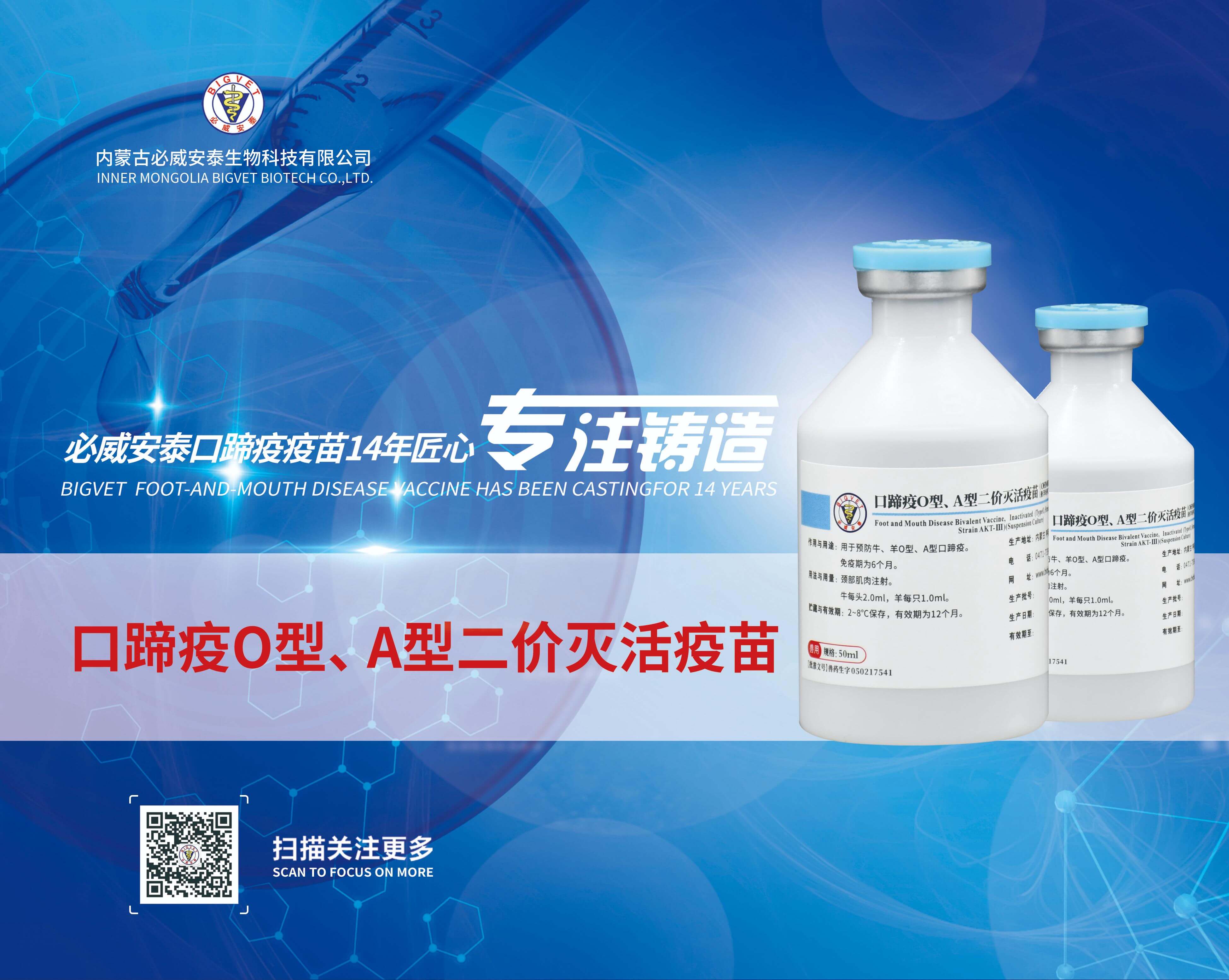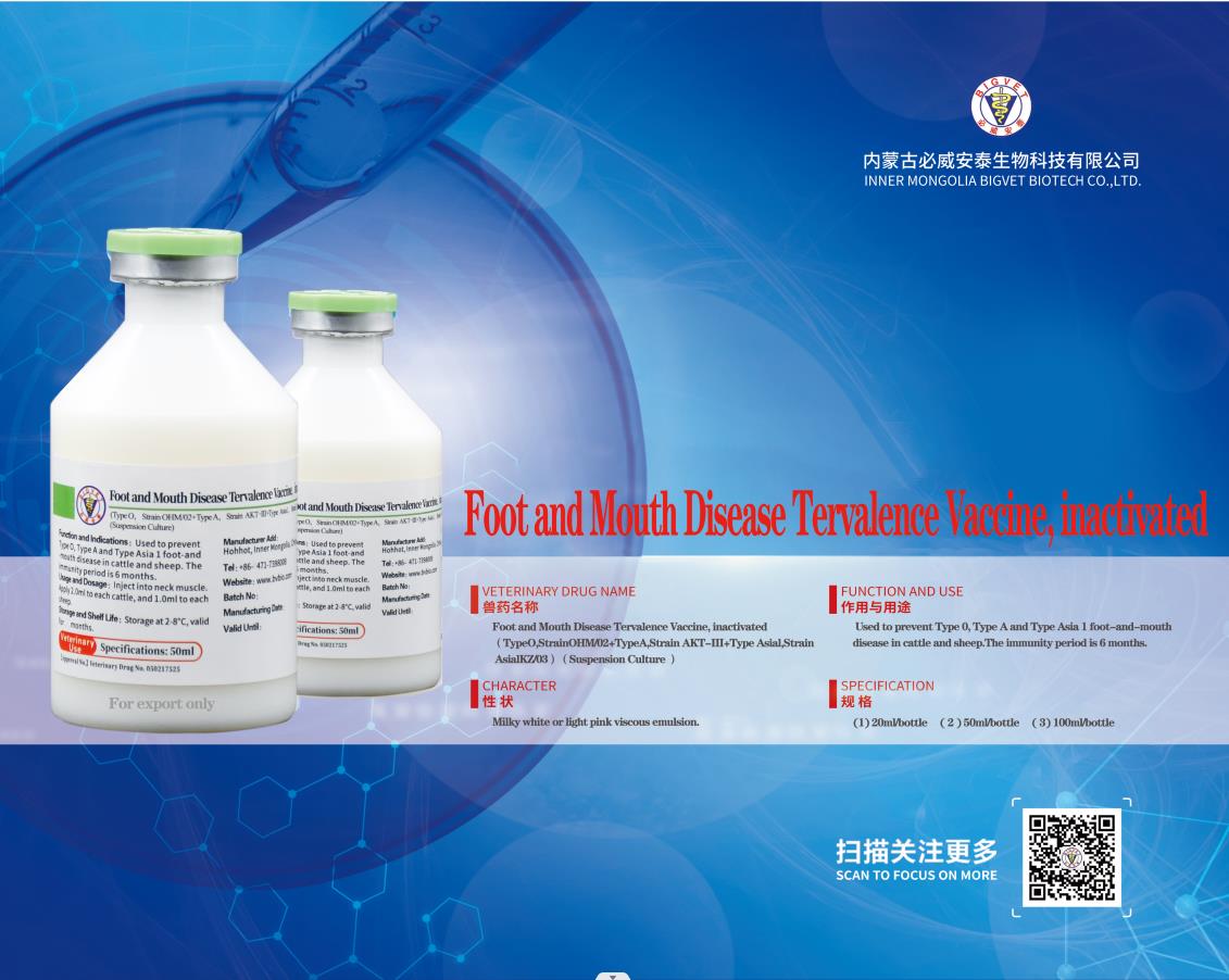 口蹄疫O型、A型二價(jià)滅活疫苗(OHM/02株+AKT-III株)(懸浮培養(yǎng)工藝)